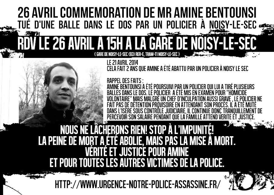 Le 21 Avril 2014 cela fait 2 ans que Amine a été abattu par un policier à Noisy le sec.