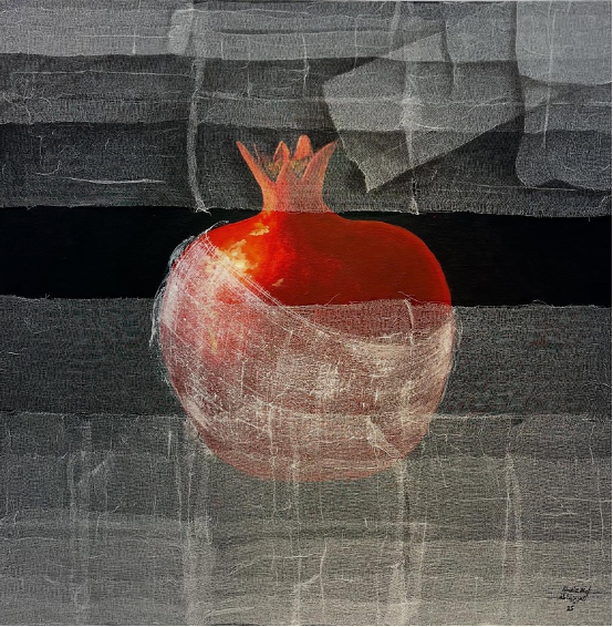9 Al ‘Azeef ‘Aatef est un artiste visuel et calligraphe palestinien basé en Palestine. Ses œuvres jouent avec de multiples supports visuels, y compris la calligraphie arabe, pour aborder les questions de la carcéralité, de la protestation et de la solidarité. Cette œuvre d’art fait partie d’une collection plus vaste et en développement qui utilise des « bandages » pour aborder les problèmes contemporains en Palestine et au-delà. Vous pouvez trouver son travail sur Instagram @alaziz_atef