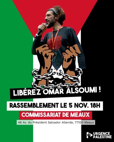 Nous appelons à rejoindre massivement le rassemblement de ce soir pour exiger la libération immédiate de notre frère Omar et la levée de ces poursuites aussi racistes qu’orwelliennes. Défendre la Palestine, c’est défendre le droit de tous les peuples à vivre libres de toute domination coloniale.