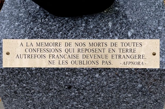 Le 13 novembre 2008 M Thierry MANDON, Maire de Ris-Orangis et Vice président du Conseil Général de l’Essonne a inauguré une stèle à l’entrée du cimetière de la ville indiquant « A la mémoire de nos morts de toutes confessions qui reposent en terre autrefois française devenue étrangère, ne les oublions pas. »