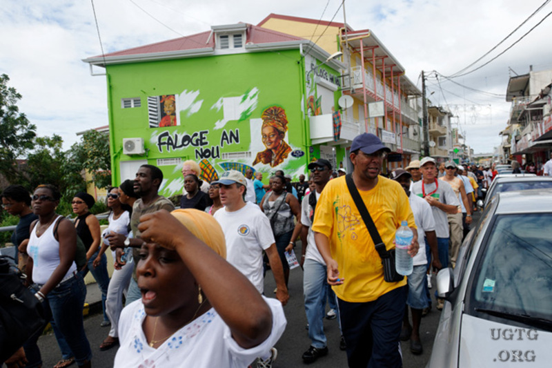 Depuis le début de l’année, le collectif « Lyannaj Kont Pwofitasyon » « Unité contre l’exploitation de l’homme par l’homme » qui regroupe une cinquantaine d’organisations, de syndicats, de partis, d’associations culturelles et de consommateurs, des ouvriers, des paysans, des artisans, des enseignants, des fonctionnaires, des employés, des cadres, des chômeurs, des entrepreneurs, des retraités, des jeunes de Guadeloupe, mène une lutte contre la vie chère, contre la dégradation permanente du tissu social et économique avec son cortège de chômage et de misère, contre la détérioration continue des services publics, contre l’accaparement de la terre et la pollution des sols, et aussi pour une « nouvelle société débarrassée de la domination et de l’exploitation capitaliste et colonialiste ».