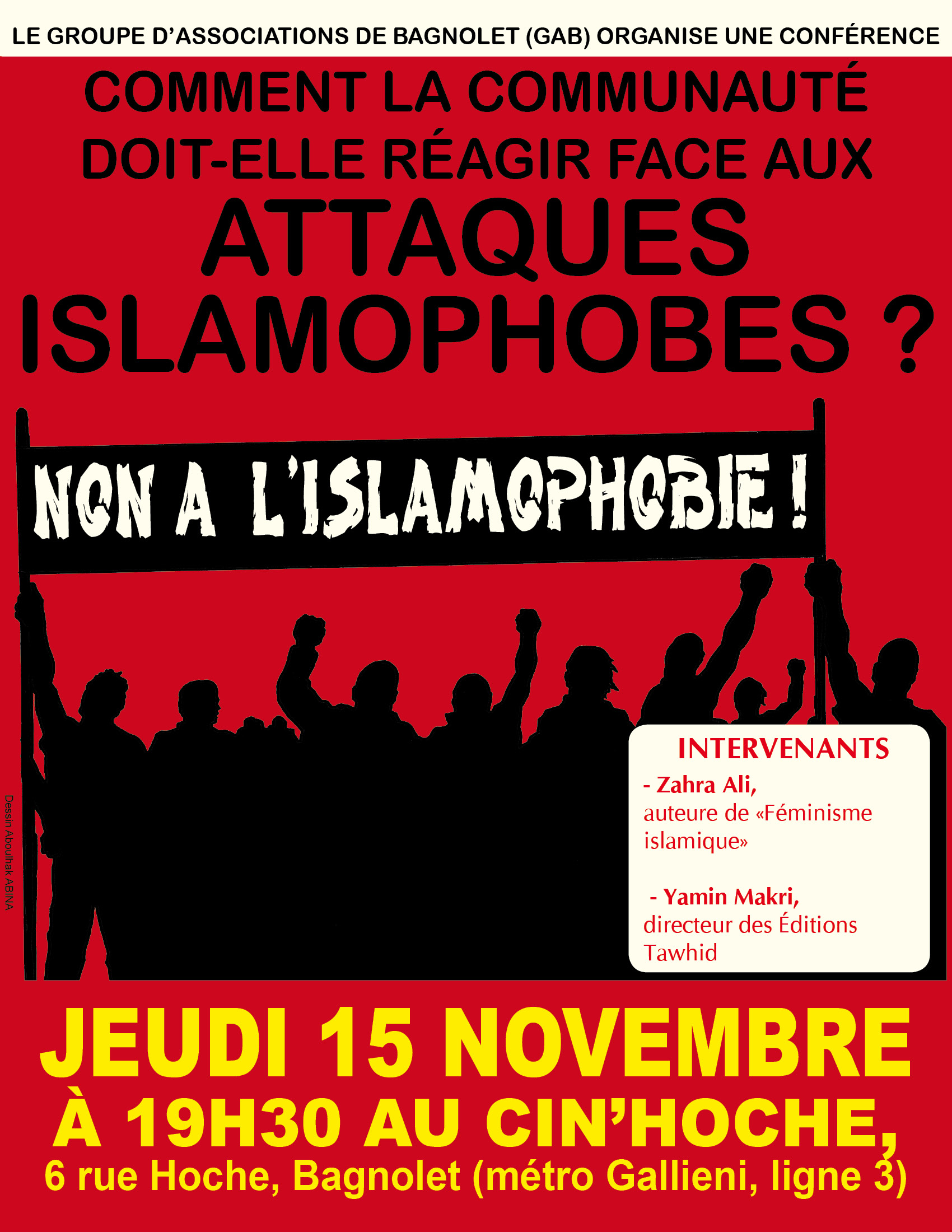 Jeudi 15 Novembre à 19h30 au Cin’hoche à Bagnolet, 6 rue Hoche (métro Gallieni) avec Zahra Ali et Yamin Makri